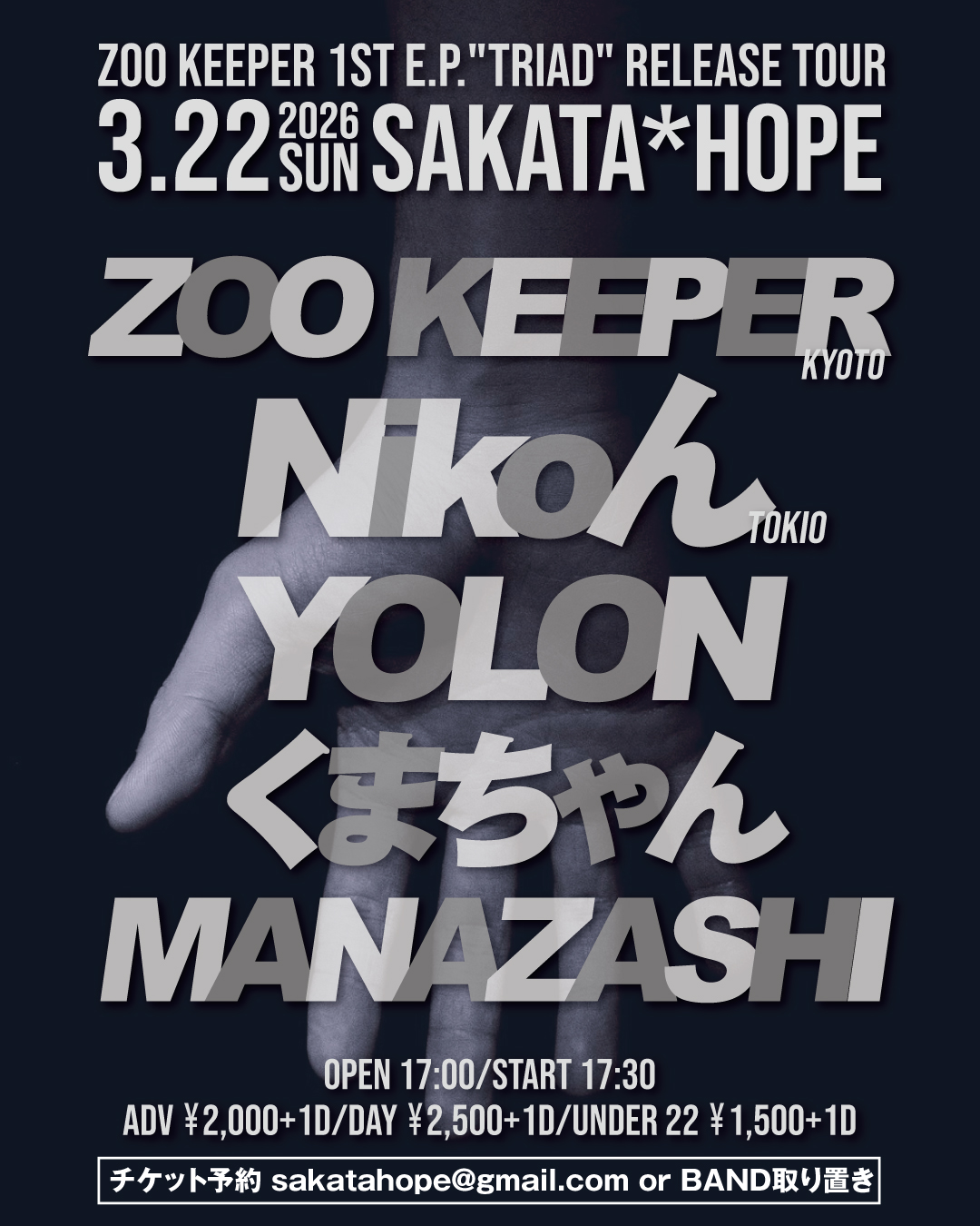 ●3/22(日)ZOO KEEPER 1st E.P. “TRIAD” Release Tour