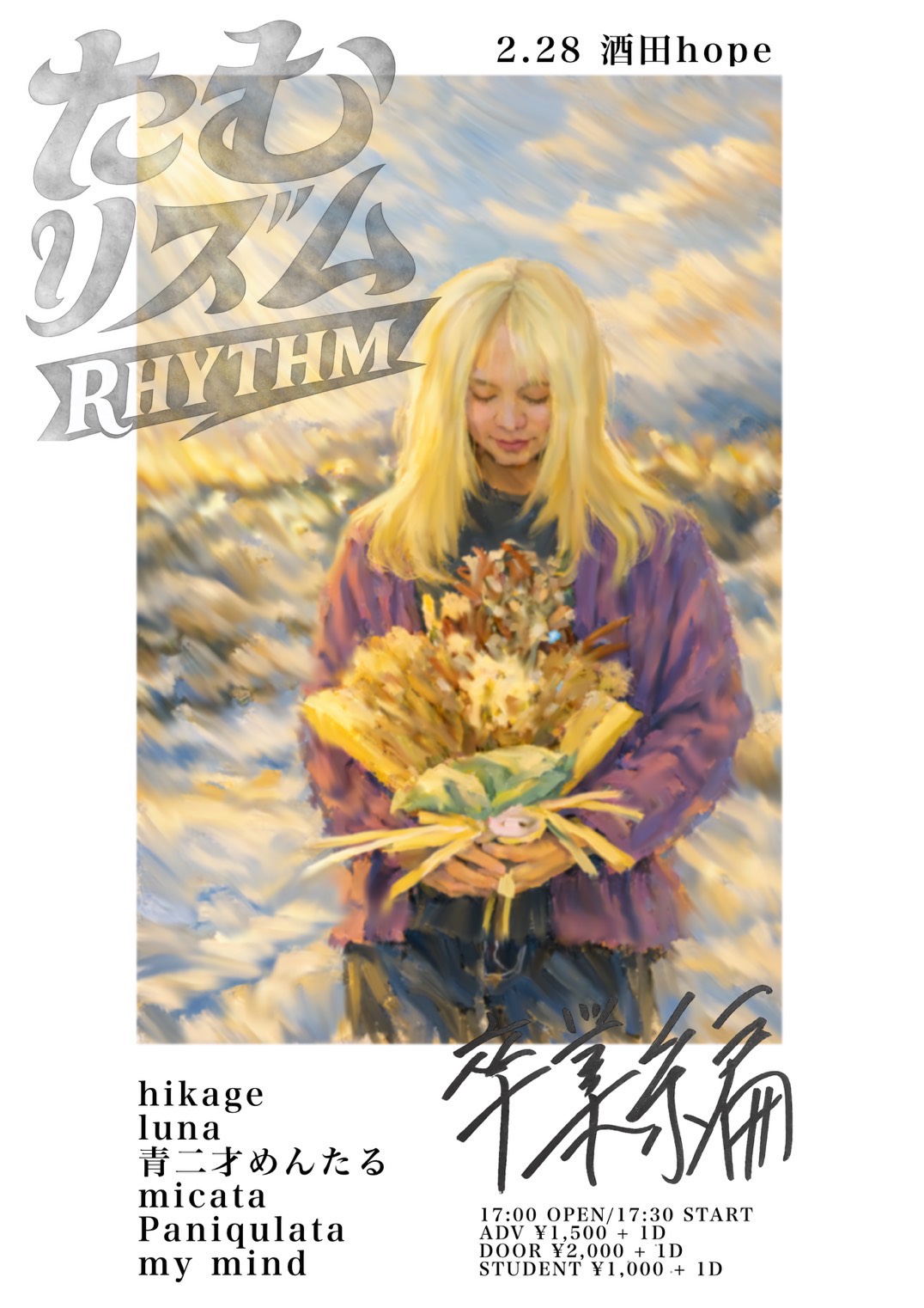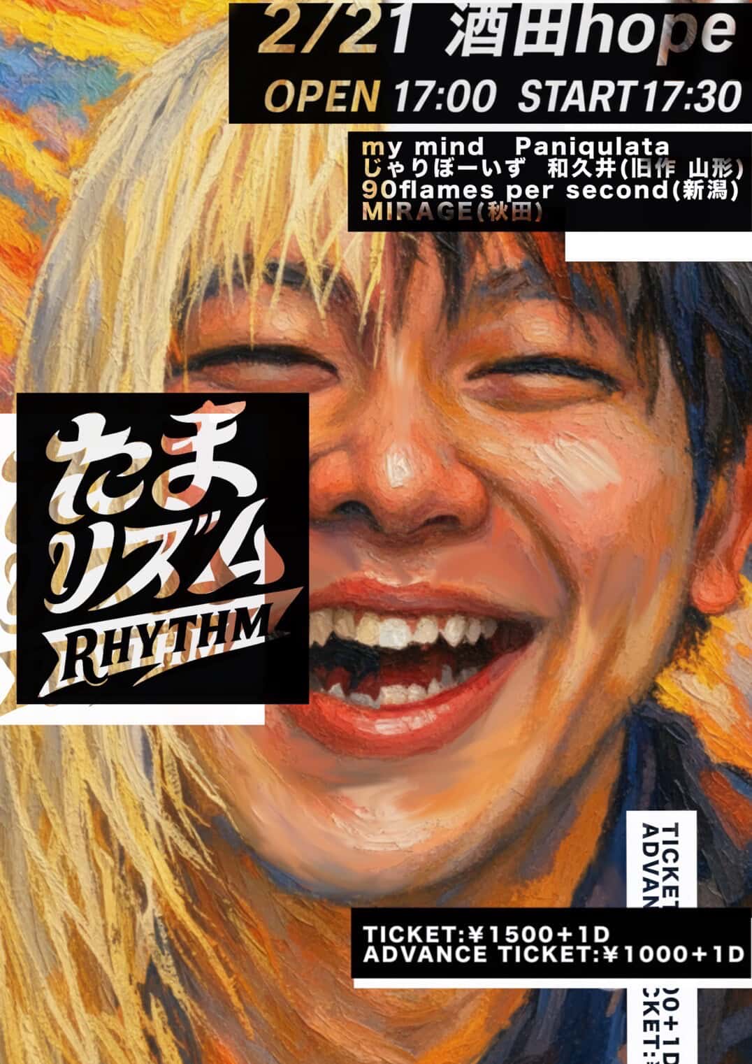 open 17:00 start 17:30 ticket adv 1,500yen+1D day 2,000yen+1D 学生 1,000yen+1D