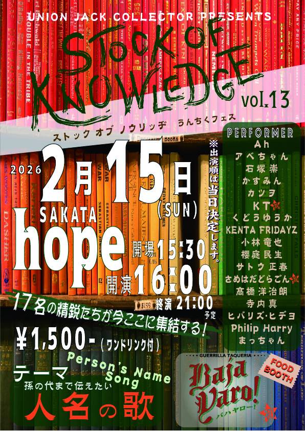 ●2/15(日)STOCK OF KNOWLEDGE Vol.10