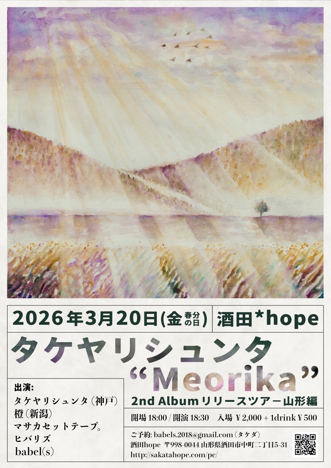 ●3/20(金)babel(s)present タケヤリシュンタ”Meorika”2nd Album リリースツアー山形辺